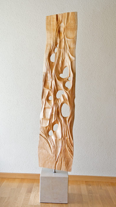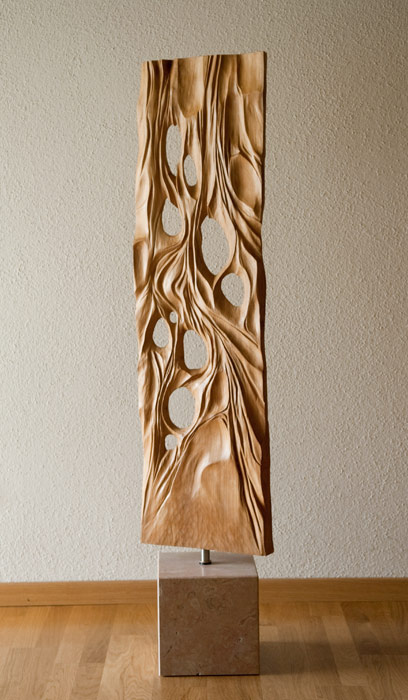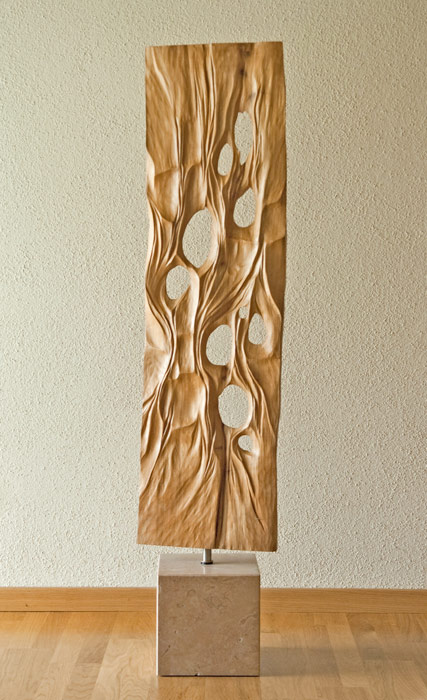 „Skulpturen, insbesondere Reliefs, leben in hohem Masse von Licht und Schatten, Gegebenheiten, die einem dauernden Wechsel unterworfen sind. Dadurch beinhalten sie ein dynamisches, zeitgebundenes Element. Um wechselnden Lichtverhältnissen gerecht zu werden, habe ich einige Reliefs drehbar gestaltet."